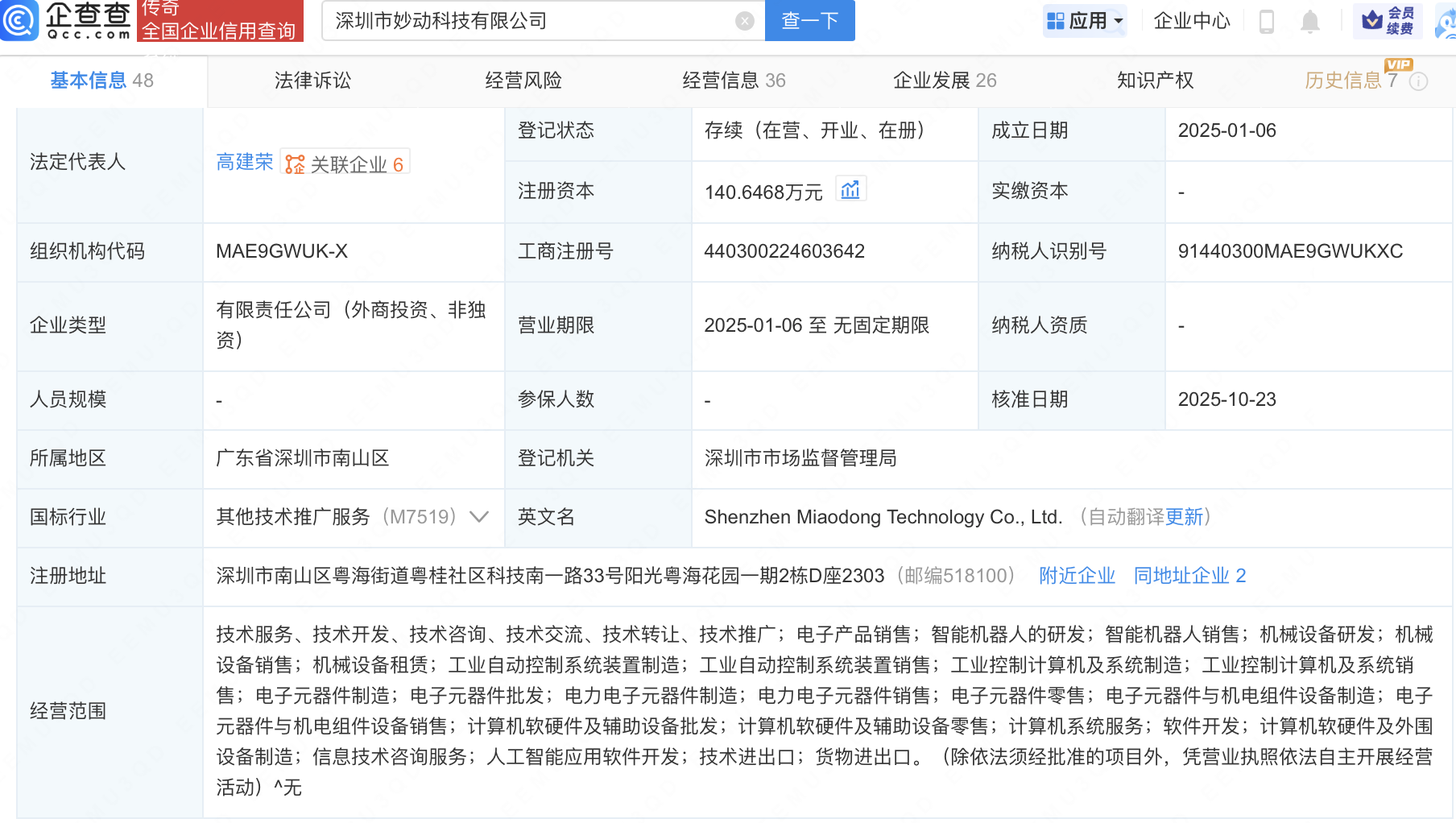 近日,深圳市妙动科技有限公司发生工商变更,新增美团关联公司汉海信息技术(上海)有限公司等为股东,同时注册资本增至140.65万元。企查查信息显示,该公司成立于2025年1月,经营范围包含:智能机器人的研发;智能机器人销售;机械设备研发等。公开信息显示,该公司以全栈式机器人核心技术为基石、以创新型机器人本体产品为载体,致力于打造兼具可玩性与智能化的最佳娱乐机器人产品形态。